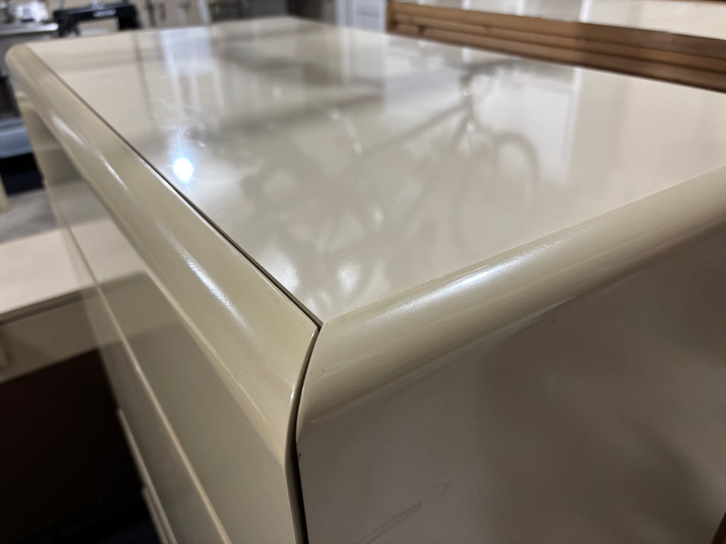 Vintage Post Modern LANE Cream and Brass Lacquer Highboy Dresser (2 Available)