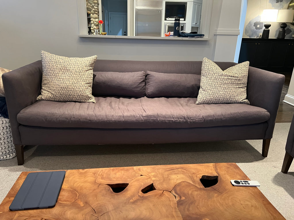Transform your living room with this elegant Cisco Home Stewart gray sofa, now available as a consignment find at exceptional value. Measuring 84" wide by 34" deep by 31" high, this generously proportioned piece offers the perfect 20" seat height for effortless comfort and relaxation. The sophisticated gray upholstery complements any modern or transitional décor, while its substantial dimensions make it an ideal anchor for spacious living areas. Two pieces available at $800 each—an outstanding opportunity for discerning shoppers who appreciate quality craftsmanship without the luxury price tag.