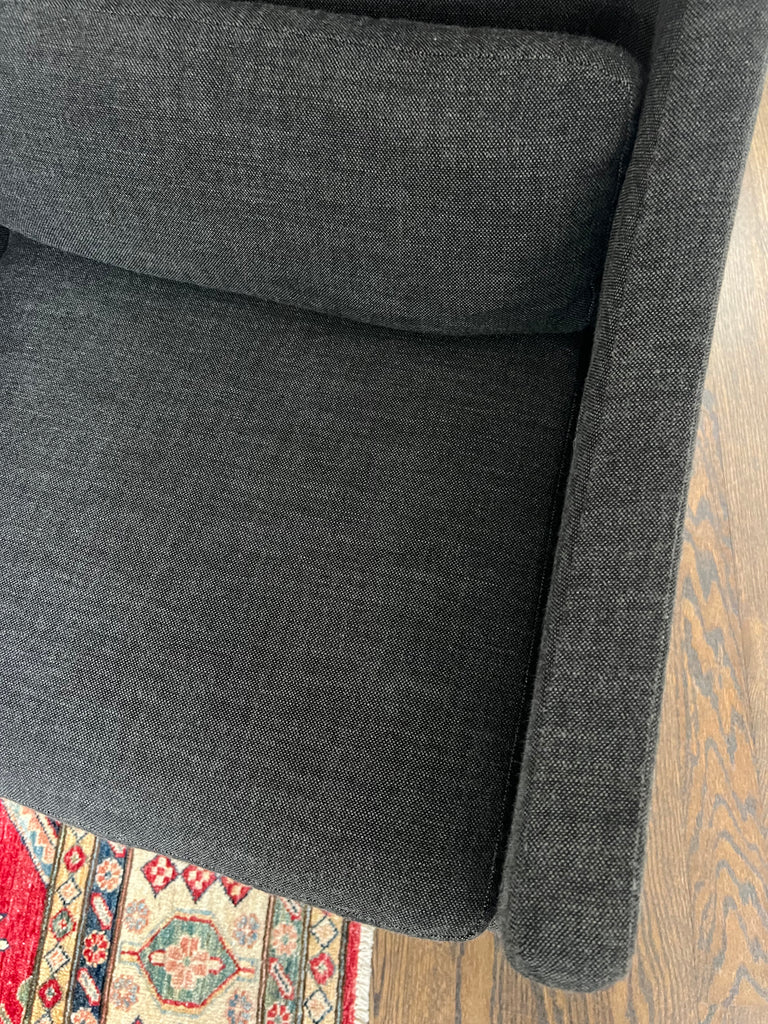Elevate your dining experience with this exceptional eight-piece collection from Restoration Hardware. This curated set features six graceful low-back side chairs paired with two commanding high-backed armchairs, all gliding effortlessly on smooth casters. Upholstered in sophisticated Black Perennials Performance Textured Linen Weave—renowned for its durability and refined aesthetic—these Belgian slope arm designs blend timeless elegance with practical luxury. The side chairs measure 24"W x 26"D x 32"H, offering the perfect balance of comfort and proportion. Ideal for those who demand both style and functionality in their dining space.