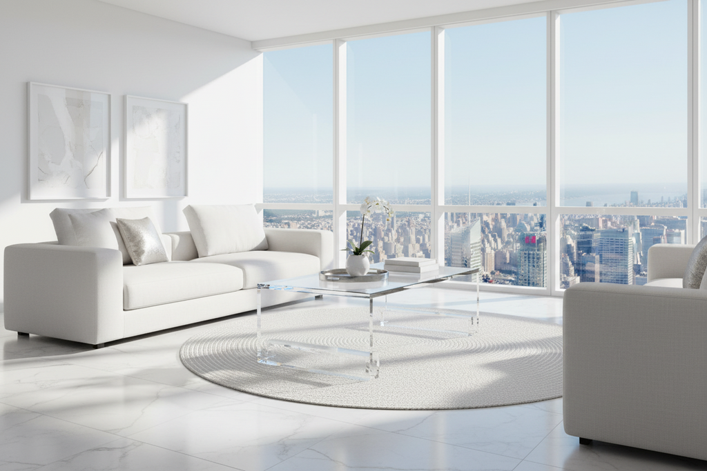 Highland House Molly Acrylic Coffee Cocktail Table with Glass Top (2 Available)