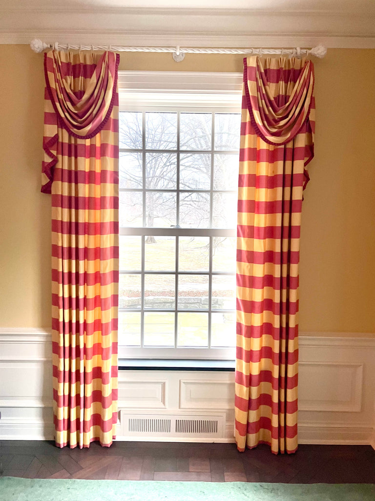Elevate your interior with these luxurious silk-lined drapery panels, offering the perfect blend of sophistication and function. Each panel measures 3 feet wide by 8 feet tall, providing generous coverage for statement windows. The silk lining adds an elegant sheen while protecting your space from light and heat. With six panels available, you have the flexibility to dress multiple windows or create dramatic layered effects. Transform any room into a refined sanctuary with these timeless window treatments.