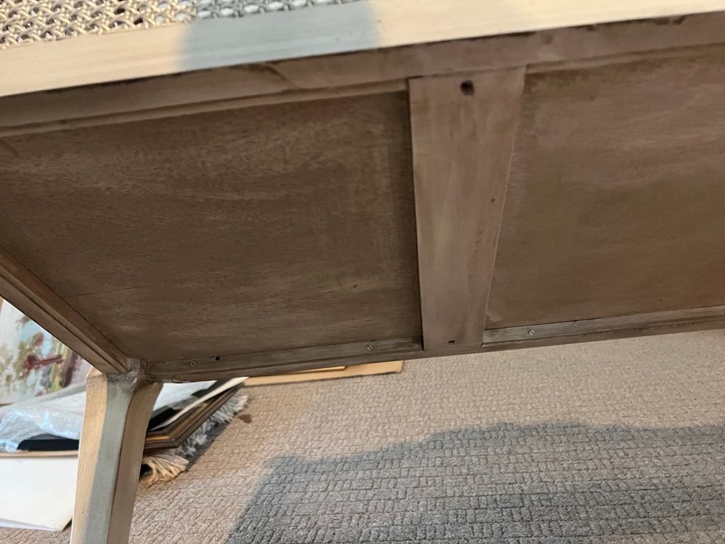 Charming vintage French baby bassinet featuring elegant proportions and timeless design. This classic piece measures 31" wide by 17" deep and stands 36" high, making it an ideal addition to a nursery or as a decorative accent. Crafted with the refined aesthetic characteristic of French furniture, this bassinet combines functionality with sophisticated style. Perfect for collectors of vintage home décor or those seeking an authentic period piece with authentic character and heritage appeal.