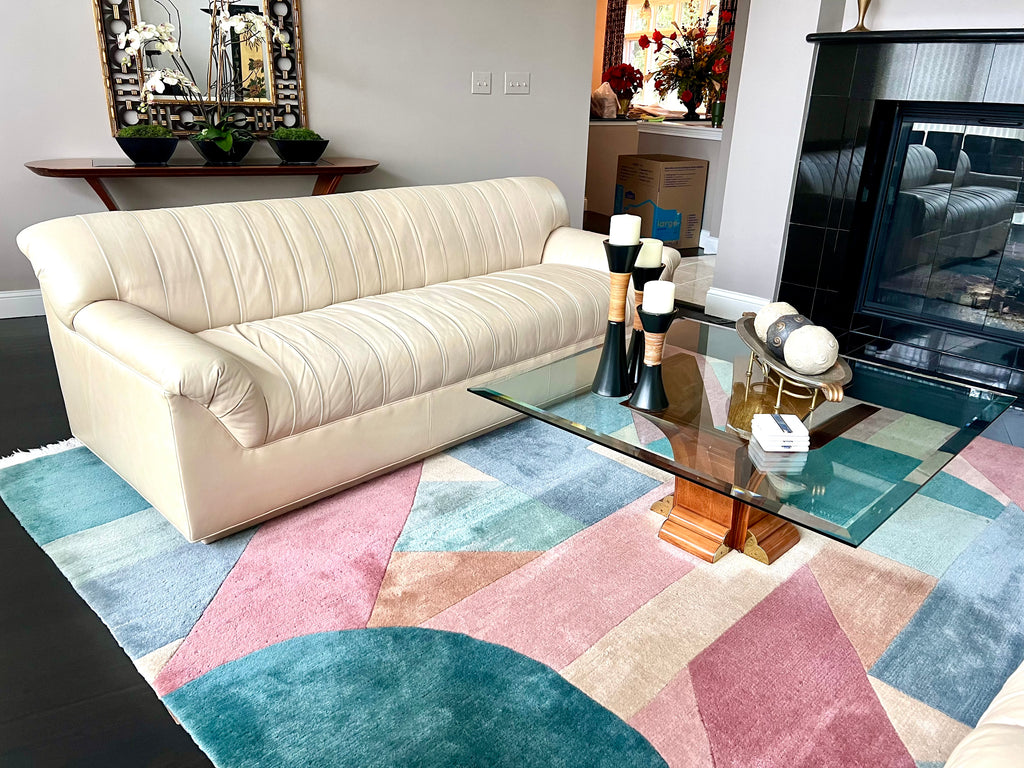 This striking Salotti Natuzzi postmodern leather sofa commands attention with its generous proportions—88 inches wide, 35 inches deep, and 31 inches tall. Upholstered in supple vanilla leather, it exemplifies the brand's commitment to refined craftsmanship and contemporary design. The neutral tone seamlessly integrates into diverse interiors while maintaining sophisticated presence. A matching sofa is available separately, allowing you to create a cohesive seating arrangement that reflects your discerning taste.