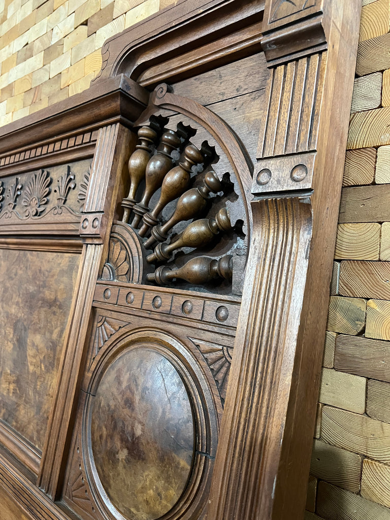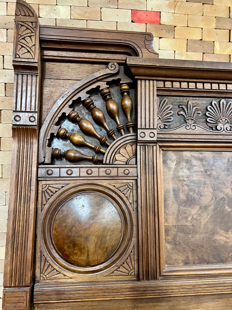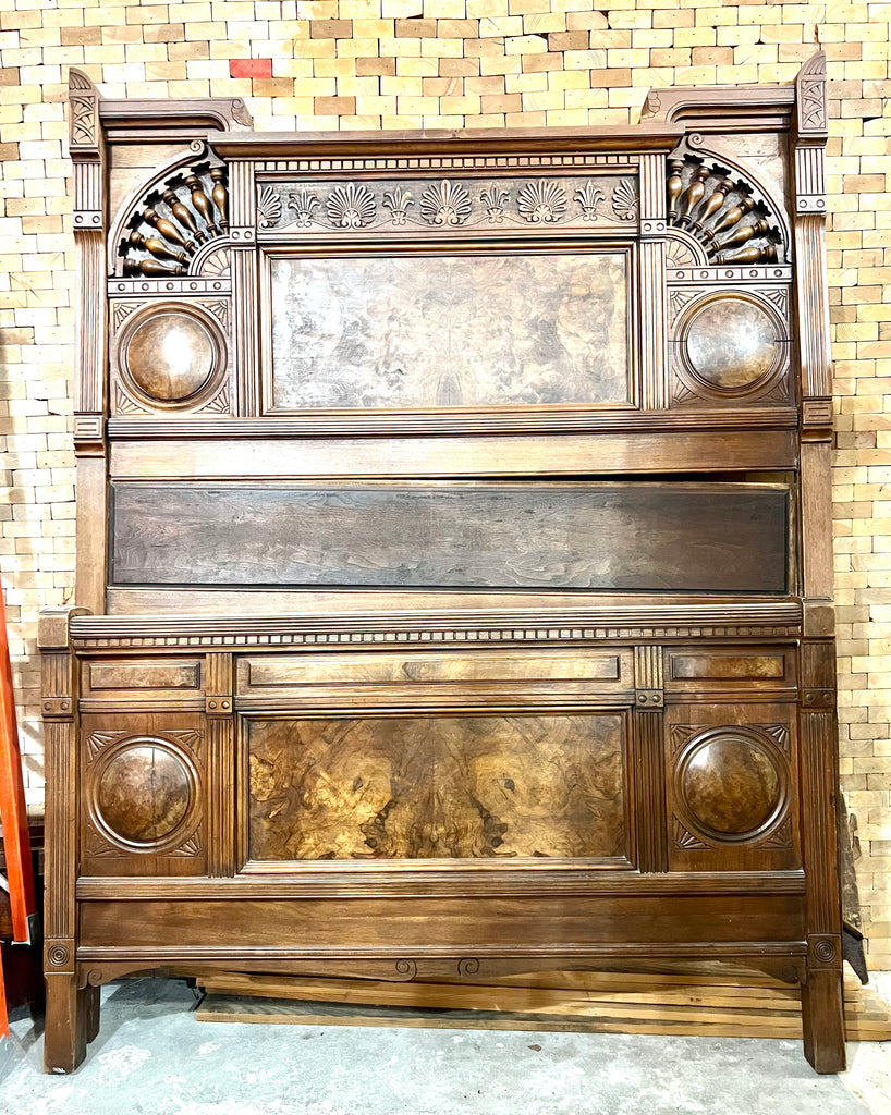 Antique Victorian Eastlake Style Walnut High Back Full Size Bed