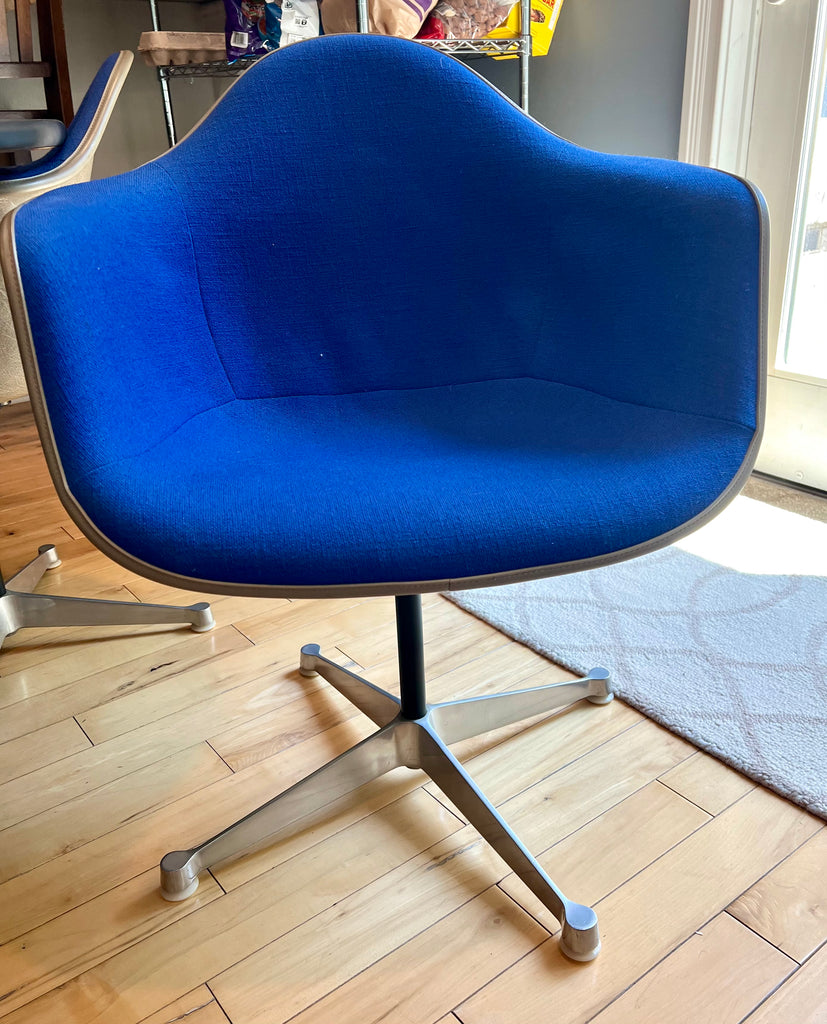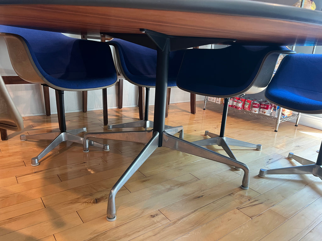 Vintage Mid-Century Modern Segmented 60" Round Dining Table and 6 Shell Chairs by Charles & Ray Eames for Herman Miller