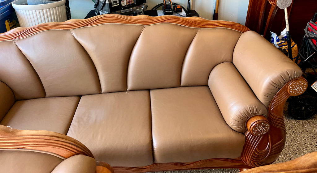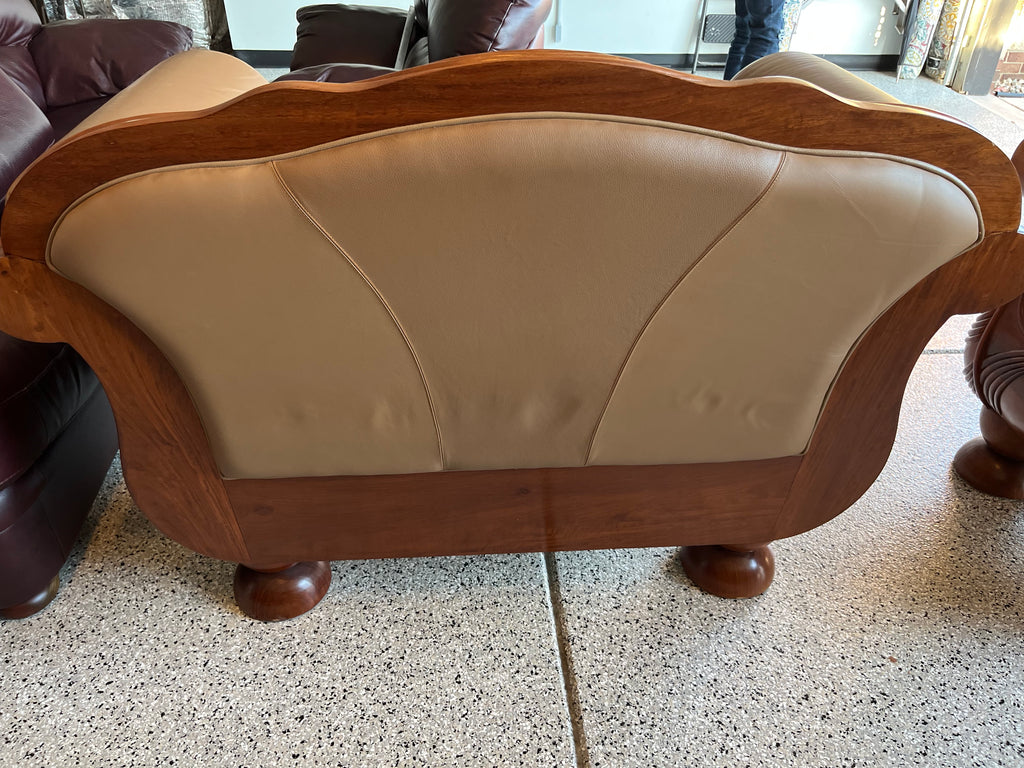 Experience the unbeatable combination of elegance and durability with our Teak Wood and Leather Sofa and Pair of Chairs, expertly crafted in Thailand. Each piece boasts exquisite teak wood and premium leather, carefully designed to enhance your living space. The Sofa - measuring 91"w x 27"d x 39"h - and the Pair of Chairs - measuring 49"w x 27"d x 39"h - will add a touch of luxury to any room. Don't miss out on this must-have addition to your home!