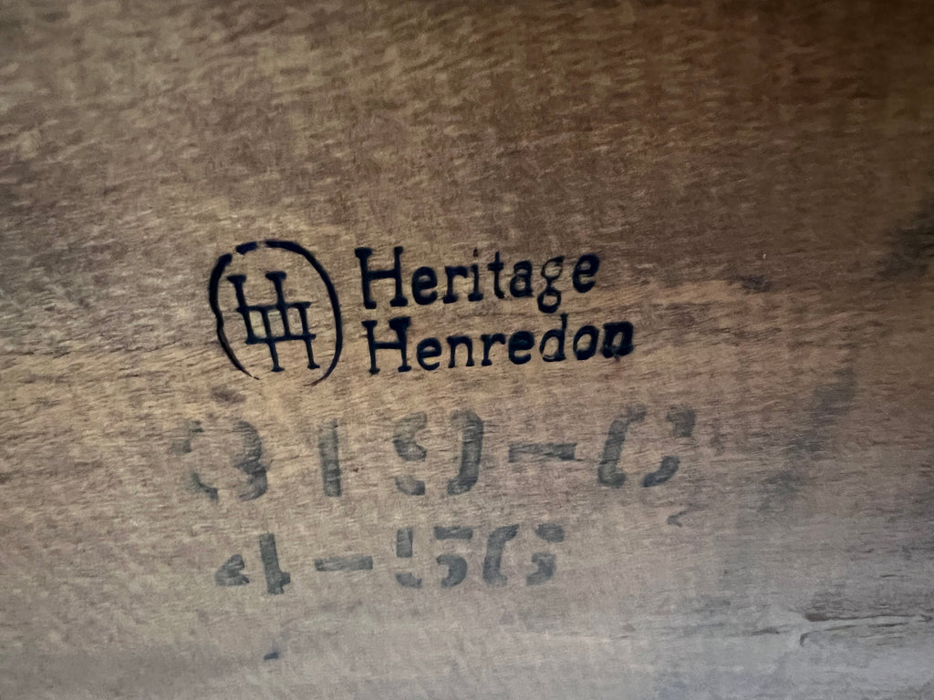 This stunning mid-century modern coffee table showcases the timeless design philosophy that made Henredon a furniture icon. The sculptural wishbone base in brushed stainless steel provides striking visual interest while the rich walnut top delivers warmth and sophistication. At 62 inches wide, it commands attention as a statement piece in any living space, offering both functional surface area and gallery-worthy aesthetics. A true collector's find that elevates your interior with authentic vintage craftsmanship and enduring style.