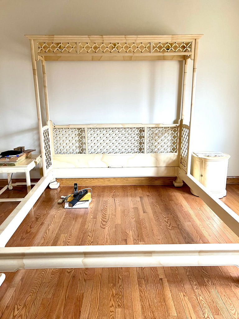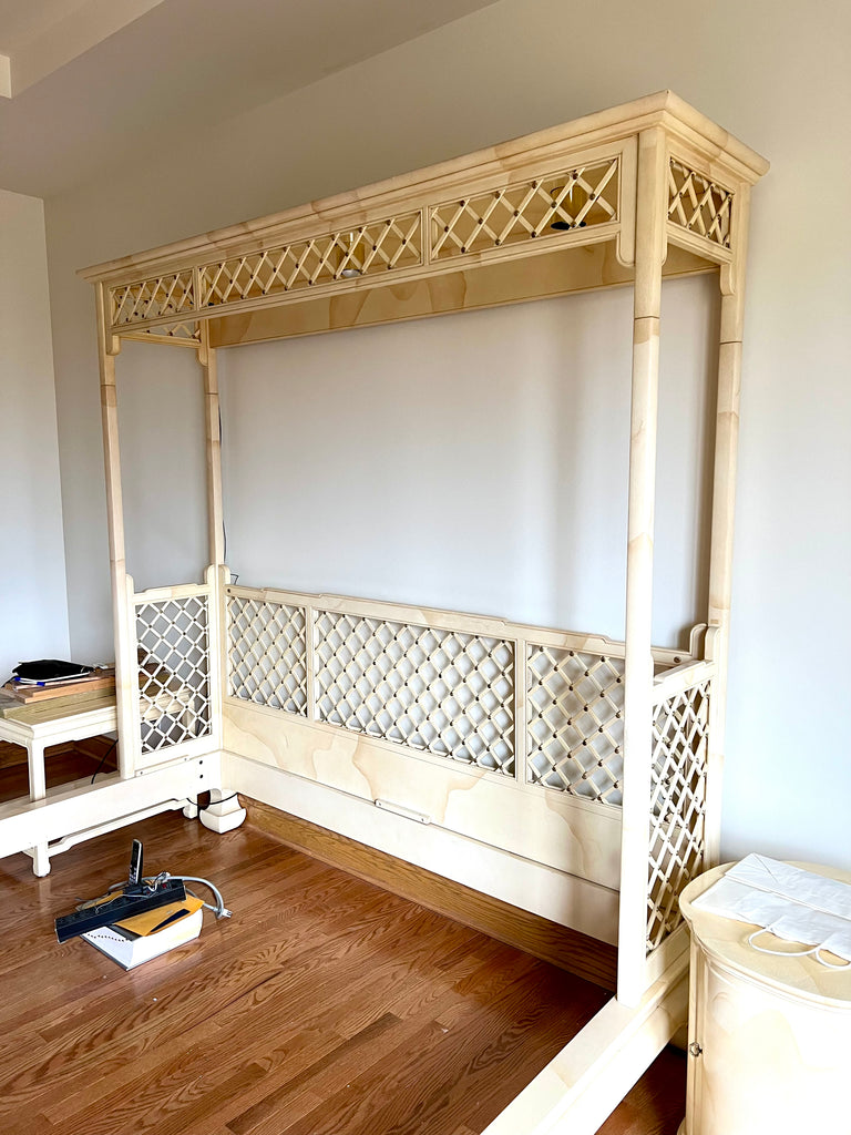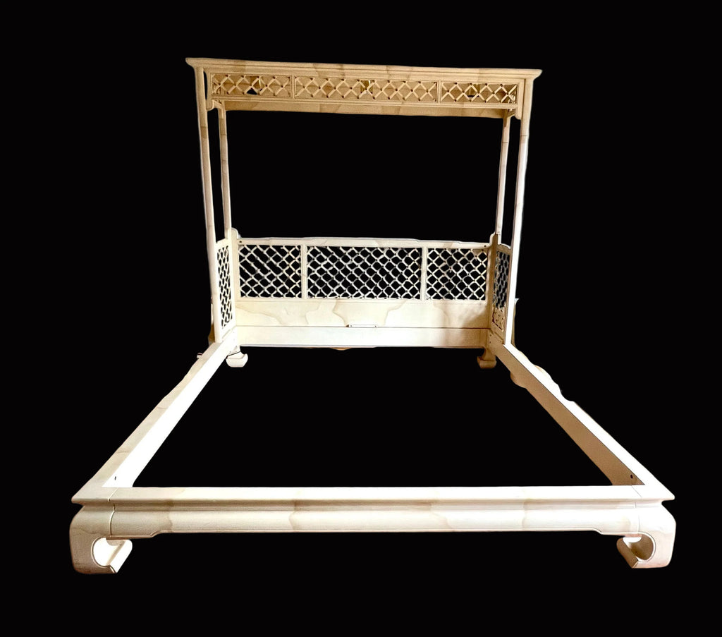 Vintage MCM Henredon Folio 16 Ming Lacquered Faux Goatskin King Bed