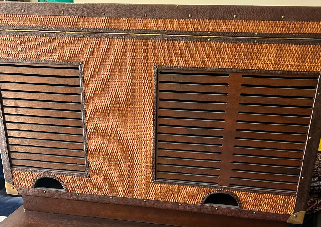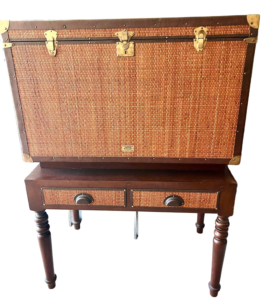 Vintage Rattan and Leather Stiles Brothers for Bauer 2 Piece Campaign Desk Trunk